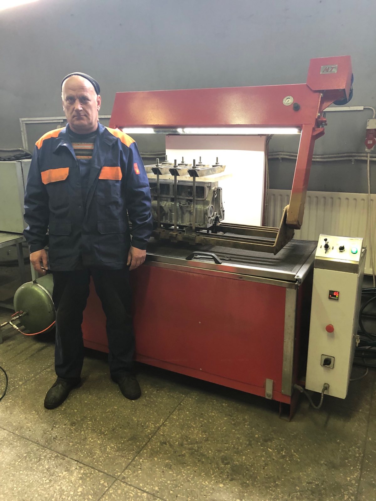 Принцип работы оборудования заключается в проверке узлов на герметичность с применением сжатого воздуха в водной среде. Герметичность это одна из важнейших характеристик, обуславливающих исправную работу двигателя автомобиля. Для этого деталь герметизируется и помещается в камеру с горячей водой. Затем через одно из отверстий подается под давлением сжатый воздух. Если на поверхности воды появились пузырьки воздуха, то это свидетельствует о наличии трещин в тестирующей детали. На видео наглядно показана работа стенда по опрессовке.